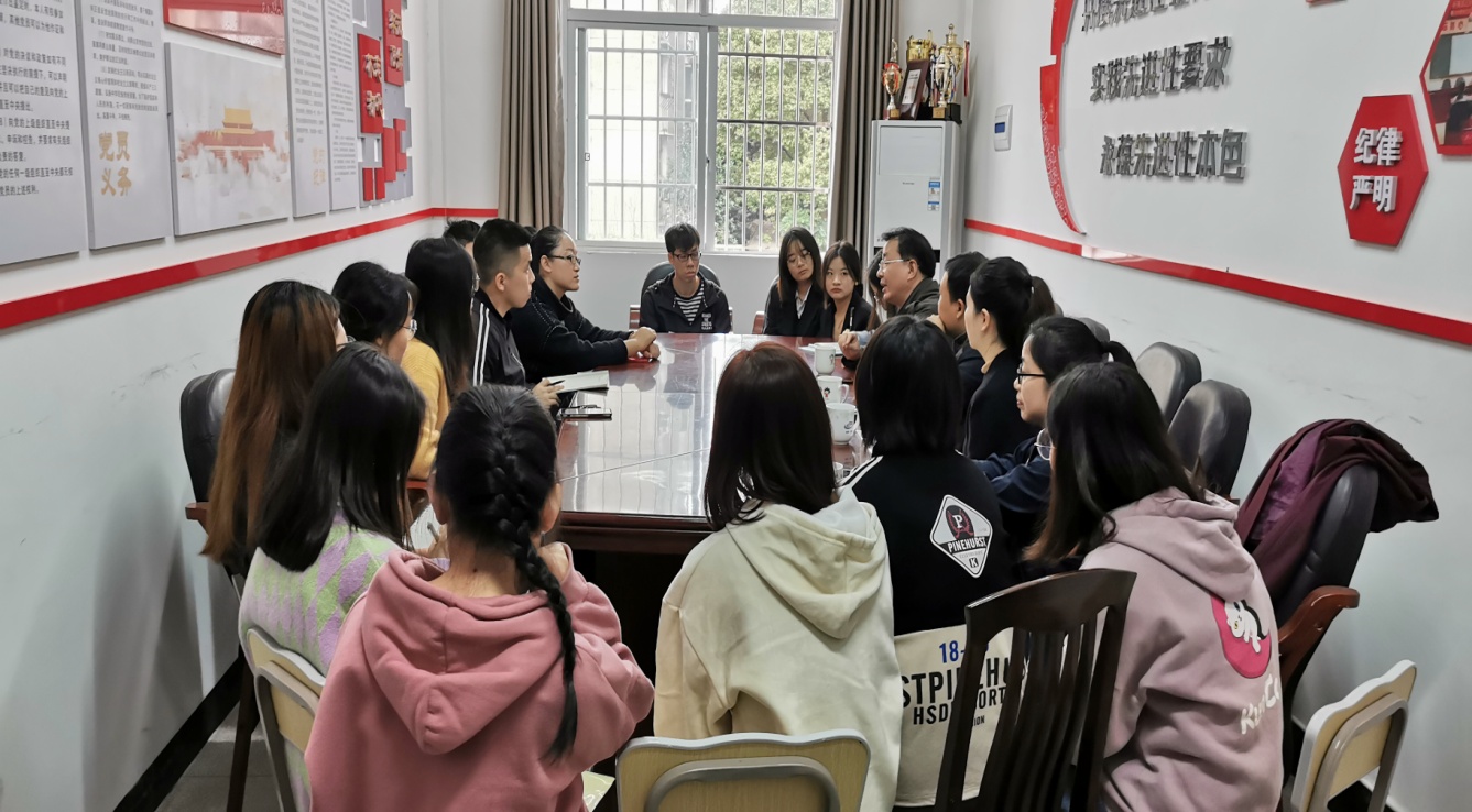 接着,两位实习队长吴润泽和张玉婷进行了简要的实习工作汇报。吴润泽队长代表实习队感谢学院的培养,感谢曙光学校提供了一个很好的实践平台,也感谢指导教师一对一的高效辅导。他认为实习生们都十分珍惜此次实习机会,都认真负责,课堂上积极展现,与学生愉快相处。最后,他希望两校合作越走越远。而张玉婷队长则从“曙光娃”的这个角度谈了自己的实习感受,认为曙光学校是一个友爱、包容的大家庭,在这种爱的氛围里成长的孩子十分善良纯真。