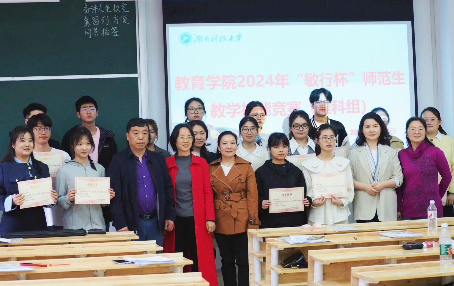 4月13日,教育学院2024年“敏行杯”师范生教学技能竞赛在敏行楼B315、B317成功举行。本次比赛由教育学院副院长张进良主持,邀请到了湘钢一中、湘潭县云龙中学、九华和平科大小学三所学校学科教育专家和我院教师共10人担任评委,比赛分文科组和理科组进行,教育学院2021级、2022级四个专业共33名选手参加决赛。比赛分教育问答和片段教学两个环节。参赛选手需提前准备好完整的教学设计方案和多媒体课件,并现场抽题完成教学问答、片段教学两个环节,评委老师根据选手的综合表现进行评分。