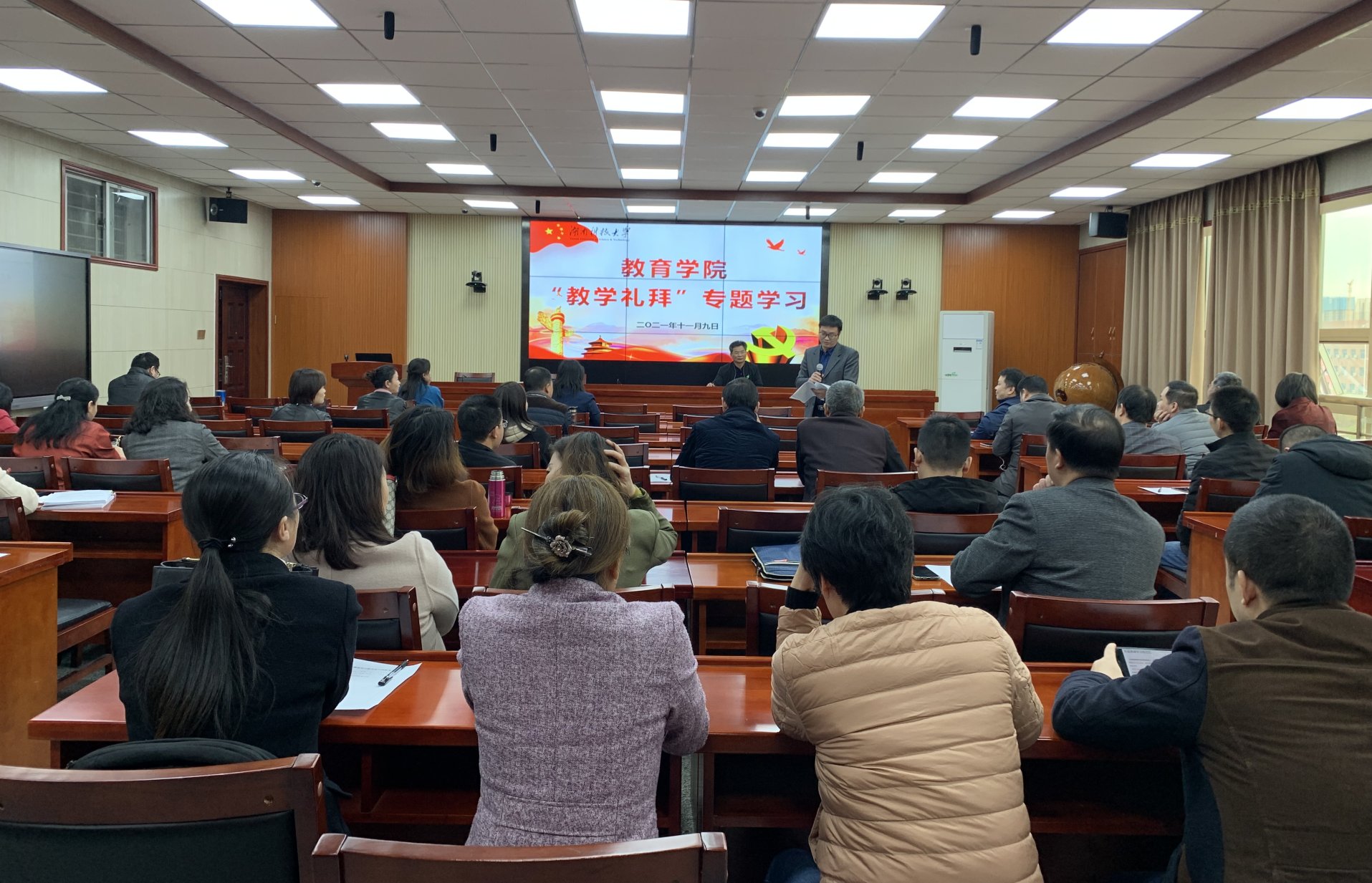 11月9日下午,教育学院在八教308会议室组织全院教职工开展“教学礼拜”专题学习。院党委书记李炳煌主持。