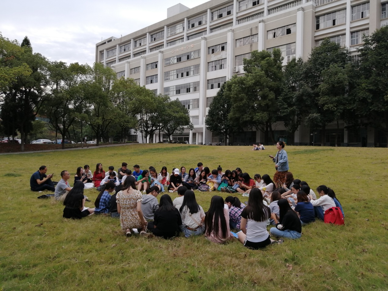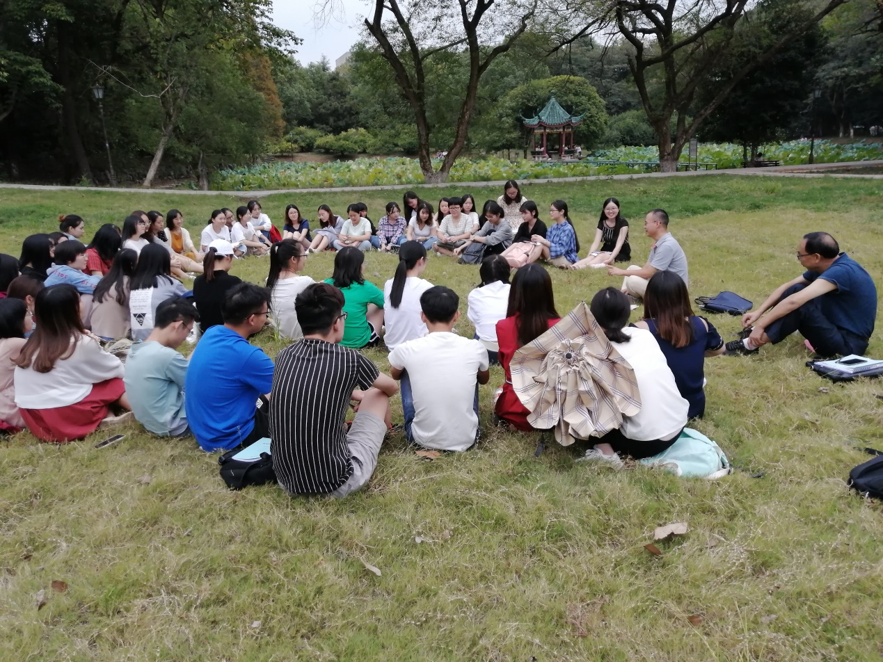 为丰富教学形式、提升教学效果,2019年9月25日下午,我院张晓报老师在九教前草坪面向16教育学1-2班同学实施了一次户外教学。据了解,这是张晓报老师继实施讨论式教学后又一次在教学场所改革方面进行的尝试。学校教学督导李建生副教授进行了旁听和指导。