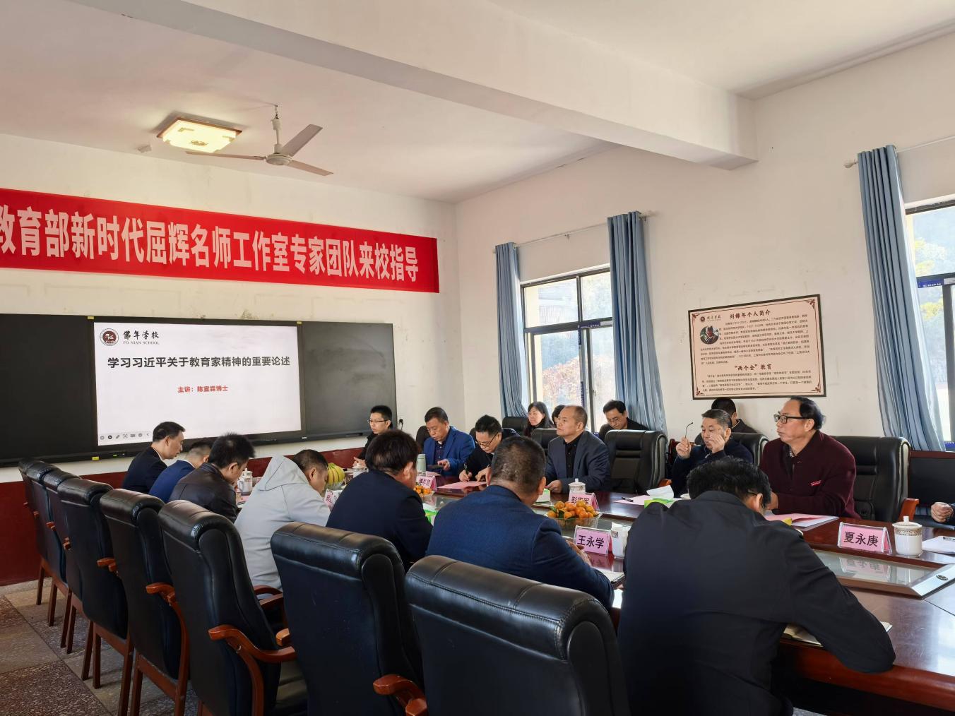 11月30日,教育学系教工党支部与醴陵市沩山镇中心校党支部联合举行“学习传承教育家精神,助力教师专业成长”主题活动。旨在学习传承教育家刘佛年先生精神,充分发挥党建引领作用,引导高校教师致力于高等教育人才培养、教育教学模式等方面的改革探索,努力培养新时代高素质人才。醴陵市教育局局长徐峰、副局长邱道芳以及教育学系教工党支部、醴陵市沩山镇中心校党支部全体党员参加。