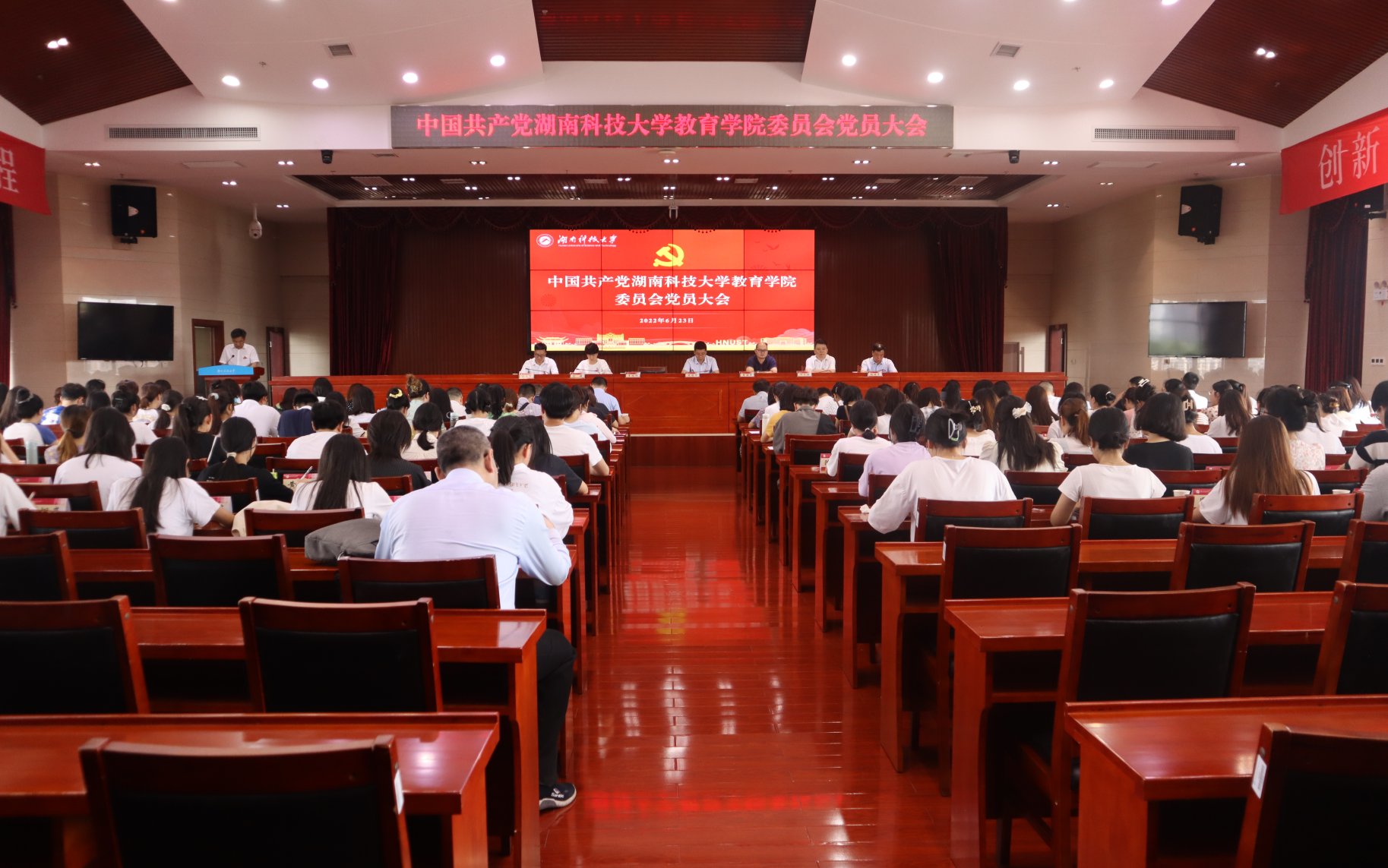 6月23日下午,中共湖南太阳成集团tyc122cc入口委员会第五次党员大会在立德楼A附楼五楼报告厅召开。大会由院党委副书记刘婕同志主持,校党委委员周智华,党办、校办副主任李洪华出席会议,教育学院全体党员参加会议。