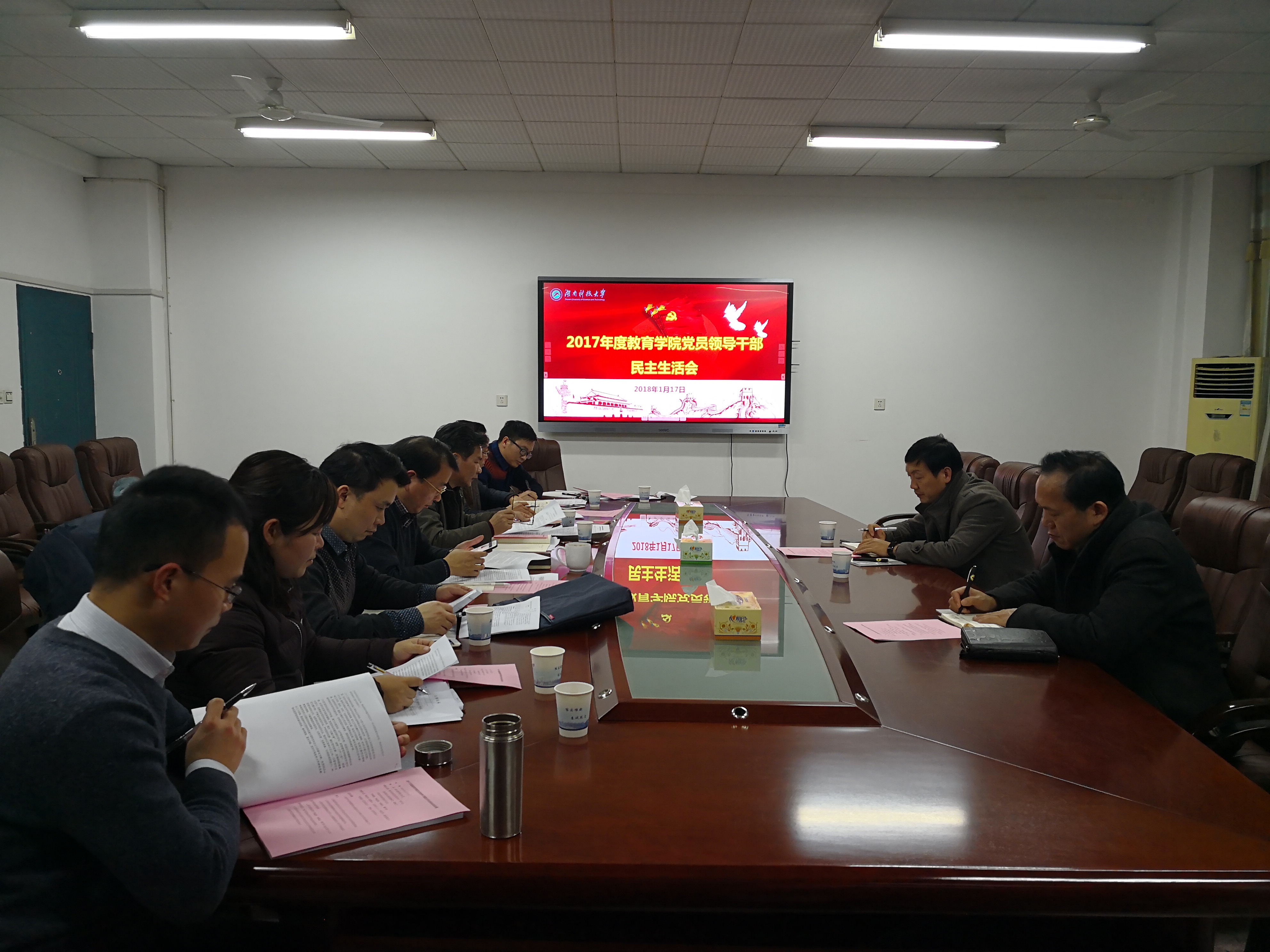 1月17日晚,我院在八教208会议室召开了领导干部专题民主生活会。本次民主生活会的主题为“认真学习领会习近平新时代中国特色社会主义思想,坚定维护以习近平同志为核心的党中央权威和集中统一领导,全面贯彻落实党的十九大各项决策部署”。联系校领导纪委书记刘宇文、校纪委副书记谢政才到会指导。会议由院党委书记李炳煌主持。