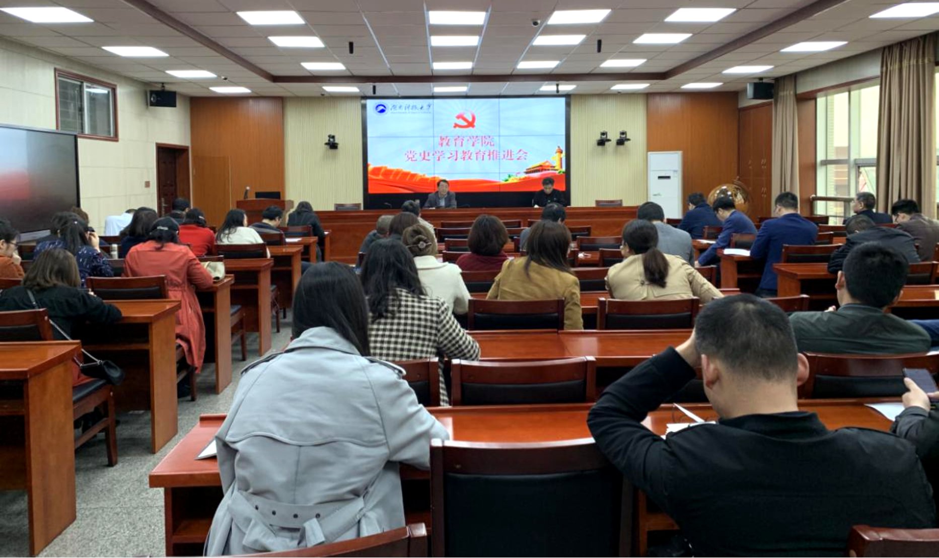 2021年4月19日下午,教育学院组织党史学习教育推进会,深入学习贯彻习近平总书记在党史学习教育动员大会上的重要讲话精神,全面推进党史学习教育。院党委书记李炳煌主持会议。