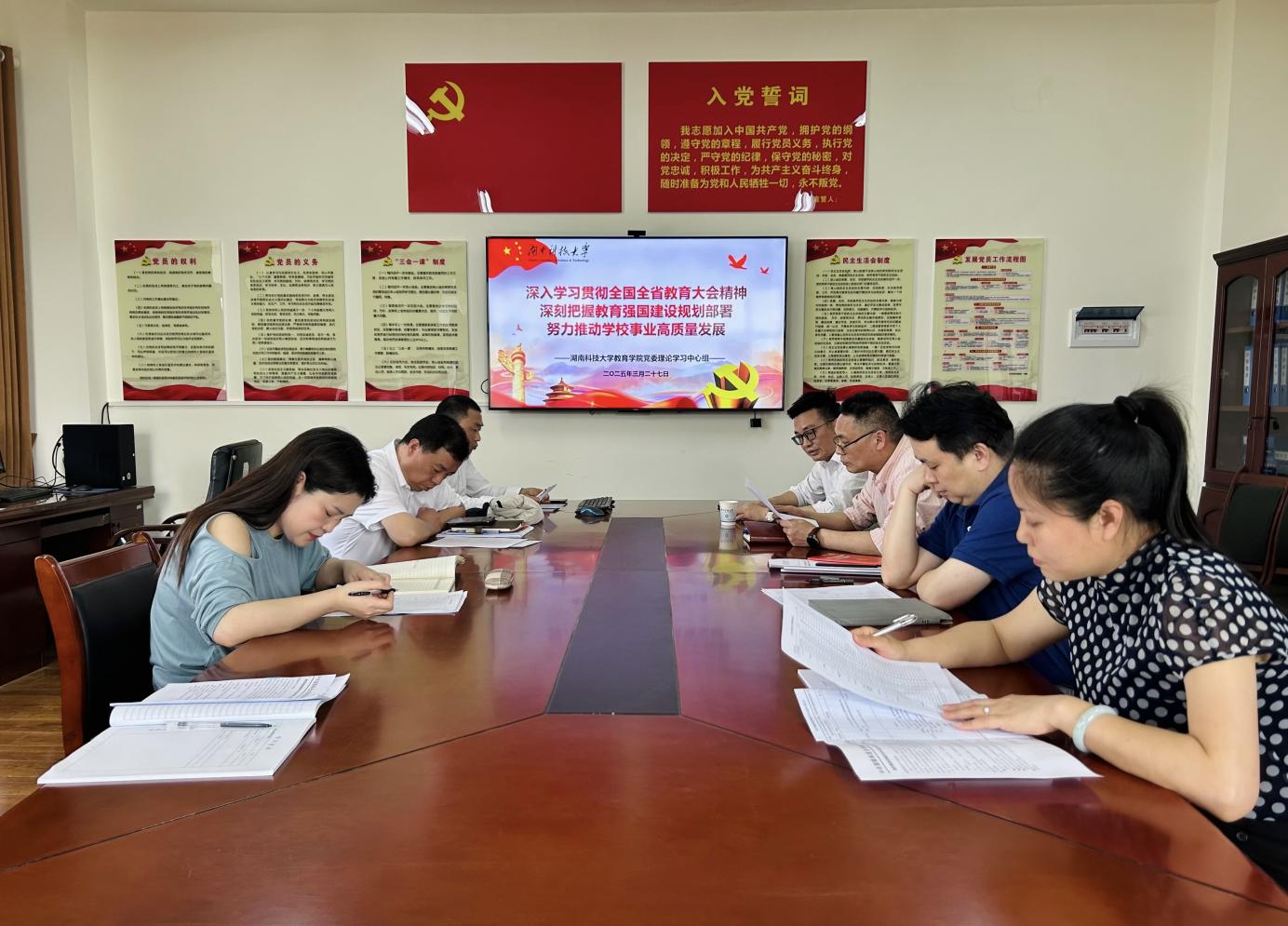 为深入学习贯彻全国全省教育大会精神,深刻领会习近平总书记重要讲话的重大意义,深刻把握全国全省教育大会与《教育强国建设规划纲要(2024--2035年)》的部署要求,切实把思想和行动统一到党中央决策部署和省委工作要求上来,努力办好人民满意的教育,为加快建设教育强国、教育强省贡献科大力量。3月27日下午,教育学院党委理论学习中心组在敏行楼B301会议室举行2025年第二次集体学习,学习主题为“深入学习贯彻全国全省教育大会精神,深刻把握教育强国建设规划部署,努力推动学校教育事业高质量发展”。傅早霞同志主持。