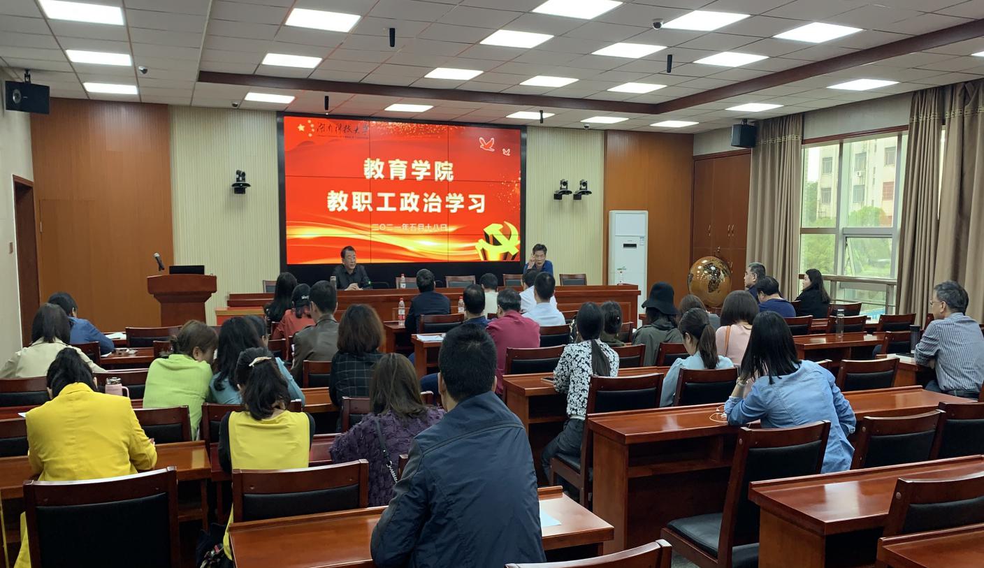 您所在的位置: 首页» 党建工作» 理论学习 教育学院组织教职工政治学习 时间:2021-05-19 10:30:00 5月18日下午,教育学院在八教308会议室组织全院教职工政治学习。本次主要学习民族宗教和统一战线工作。院党委书记李炳煌主持学习。 与会人员认真学习《中国共产党统一战线工作条例》、习近平总书记在中央第七次西藏工作座谈会上重要讲话等资料。李炳煌强调要深入学习贯彻习近平总书记重要讲话精神,坚持维护祖国统一、加强民族团结,深入开展党史教育,把爱国主义教育贯穿育人全过程,促进各民族交往交流交融。