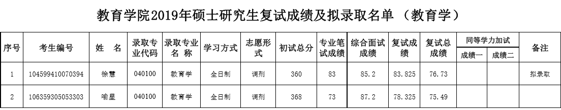 教育学院2019年硕士研究生复试成绩及拟录取名单