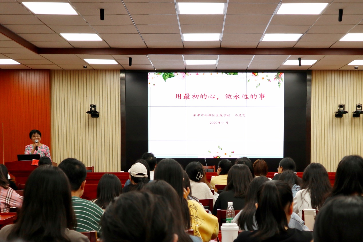 11月18日晚,全国模范教师、湖南省特级教师、湖南省唯一一名作为小学教师代表参加由习近平总书记主持召开的学校思想政治理论课教师座谈会并受到接见的石灵芝老师应邀莅临我校,在第八教学楼308学术报告厅为我院师生带来“用最初的心,做永远的事”的主题讲座。讲座由教育学院副院长谭千保主持,教育学院研究生、本科生到场聆听。