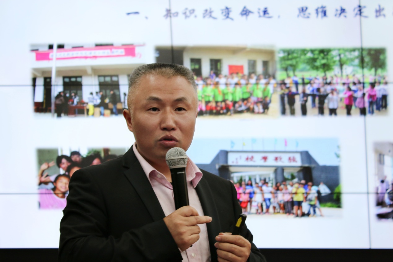 11月13日下午,叮当网络助学创始人、湖南省师德巡讲团主讲成员、湖南省最可爱的乡村教师李小龙应邀莅临我校,在第八教学楼308学术报告厅为我院师生带来“教育若水,以善致善”的主题讲座。讲座由教育学院副院长谭千保主持,教育学院研究生、本科生到场聆听。