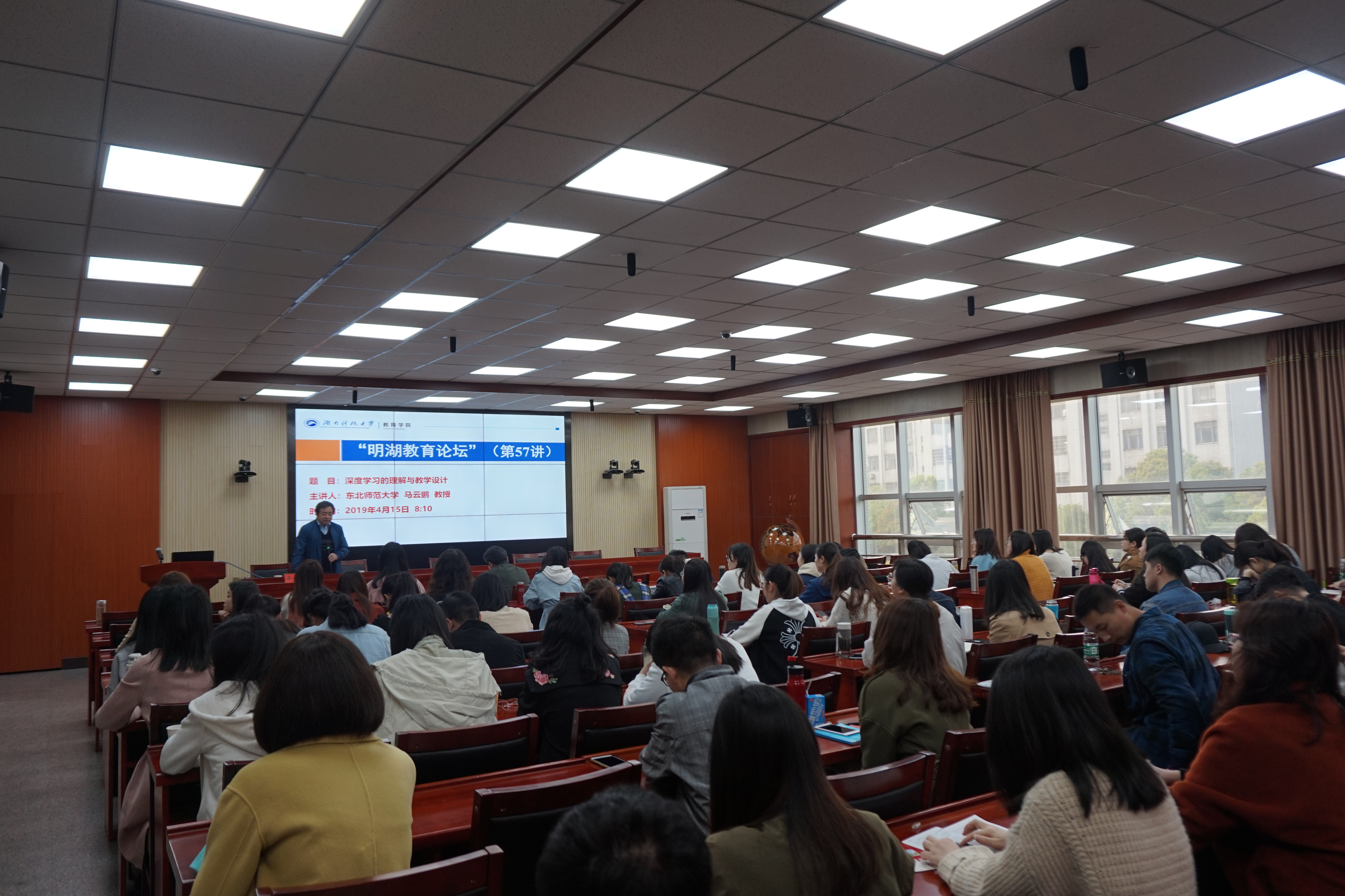 2019年4月15日上午,东北师范大学教育学部博士生导师马云鹏教授做客“明湖教育论坛”,为我院师生带来题为“深度学习的理解与教学设计”的学术报告。报告会由教育学院党委书记李炳煌主持。