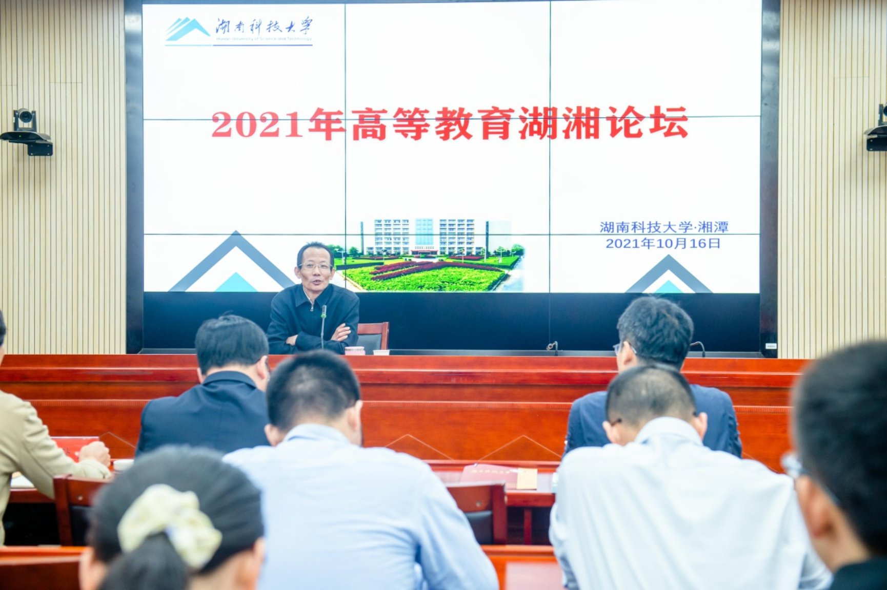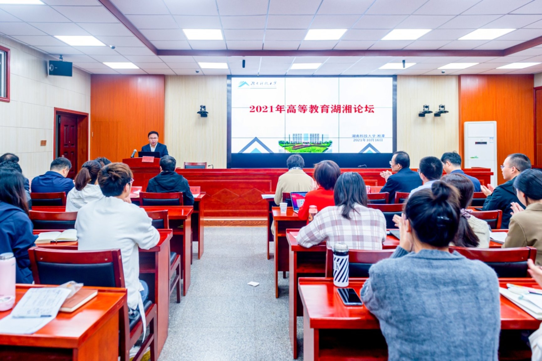10月16日,湖南科技大学2021年高等教育湖湘论坛在教育学院308学术报告厅举行。华中科技大学《高等教育研究》副主编曾伟编审,全国教育学类专业教学指导委员会委员、扬州大学教育科学学院原院长、博士生导师陈秋苹教授,南京师范大学教育科学学院博士生导师王建华教授,湖南太阳成集团tyc122cc入口博士生导师彭拥军教授等应邀莅临。湖南科技大学纪委书记郭时印教授出席。论坛由研究生院院长李海萍教授主持。多所高校的教师和学生代表80余人参加此次论坛。