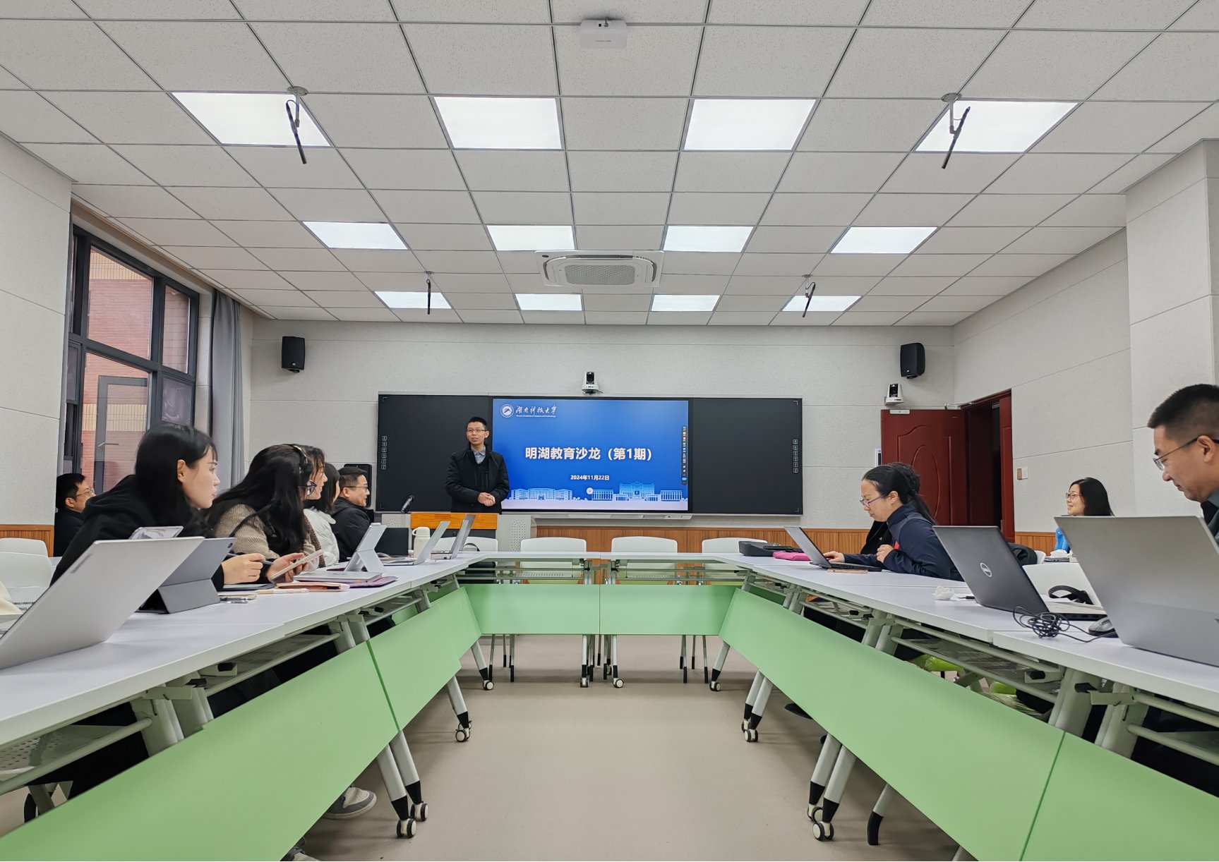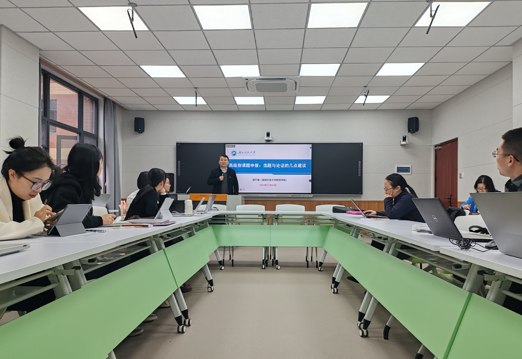 为进一步推进2025年度国家社科基金项目的申报工作,提高申报质量,同时为老师们提供宝贵的交流平台,教育学院于2024年11月22日在敏行楼B315举办明湖教育沙龙(第1期)。院长谭千保出席会议并作经验分享,副院长陈京军主持,学院80后教师参加。