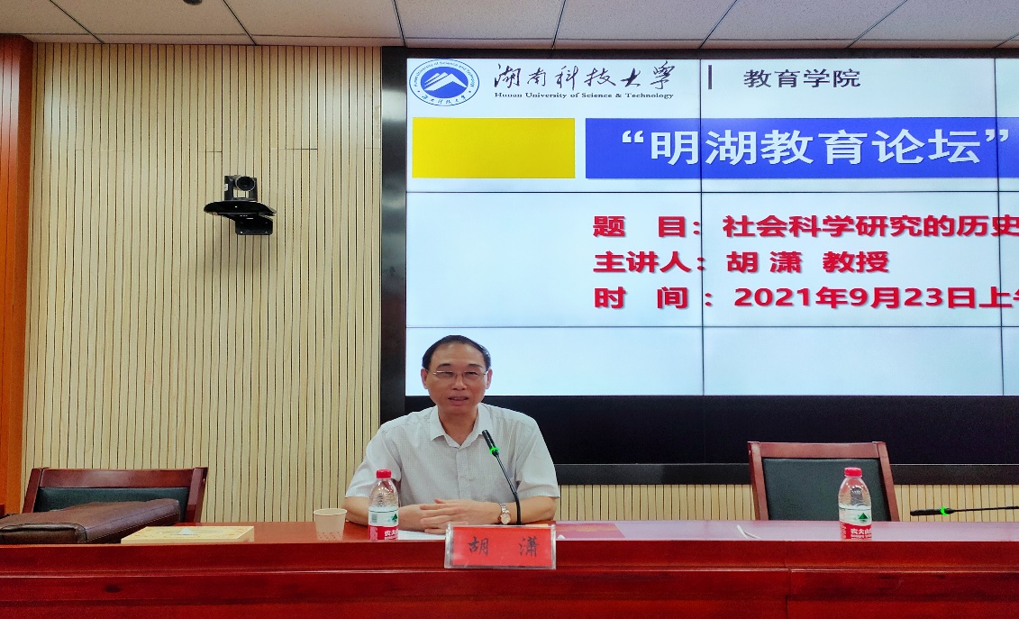 9月23日上午,广州大学教授、中山大学兼职博导胡潇教授做客“明湖教育论坛”,在第八教学楼308学术报告厅为我院师生带来了题为《社会科学研究的历史学转向》的学术报告。报告由教育学院院长李海萍主持,教育学院教师、研究生代表到场聆听。