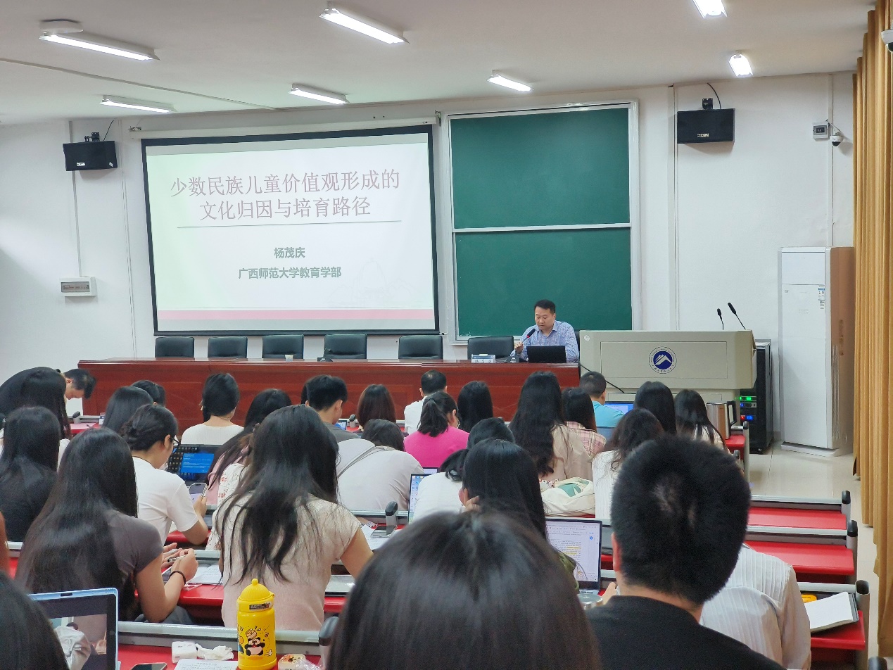 5月20日上午,广西师范大学教师教育学院院长、教育学部副部长杨茂庆教授做客“明湖教育论坛”,在昭潭书院第二教学楼102报告厅为我院师生带来“少数民族儿童价值观形成的文化归因与培育路径”的学术讲座。教育学院教师代表、2022级、2023级研究生参加,讲座由教育学院院长谭千保主持。