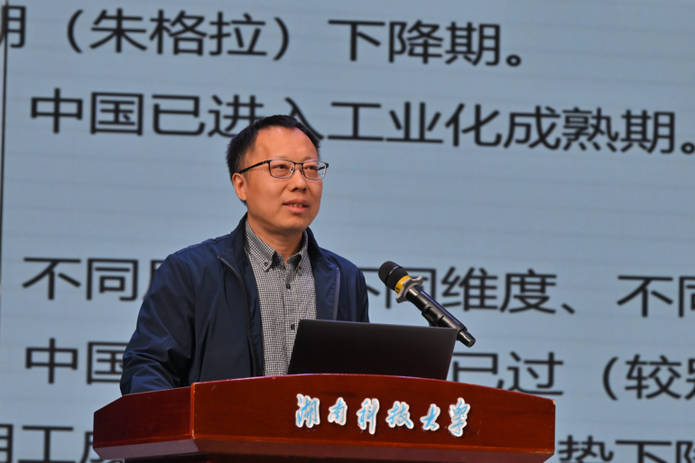 华南师范大学职业教育学院院长刘志文教授就《赋能新质生产力:高等职业教育改革新使命》进行报告。他首先高度肯定了湖南科技大学成立职业技术师范学院的战略眼光,并指出学院未来需要依托教育博士专业学位授权点来定位育训高水平、高层次、高素质的职教师资。接着,他对新质生产力发展的背景、内涵以及高职教育改革的新挑战和新使命进行了深入阐述,并着重强调在教育科技人才一体化的背景下,职业教育除了在提供产业人才之外,还应在教育公平和社会发展上做出重要贡献。
