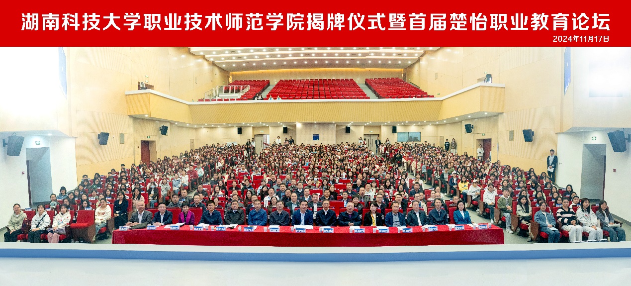 11月17日,由湖南科技大学、湖南工业职业技术学院、湖南楚怡职业教育中心联合主办的首届楚怡职业教育论坛在湘潭举行。来自全国各地的职业教育“大咖”共同见证湖南科技大学职业技术师范学院揭牌,围绕“新质生产力与高质量职业教育师资培养”主题共商职业教育发展大计,共谋职业教育发展路径。