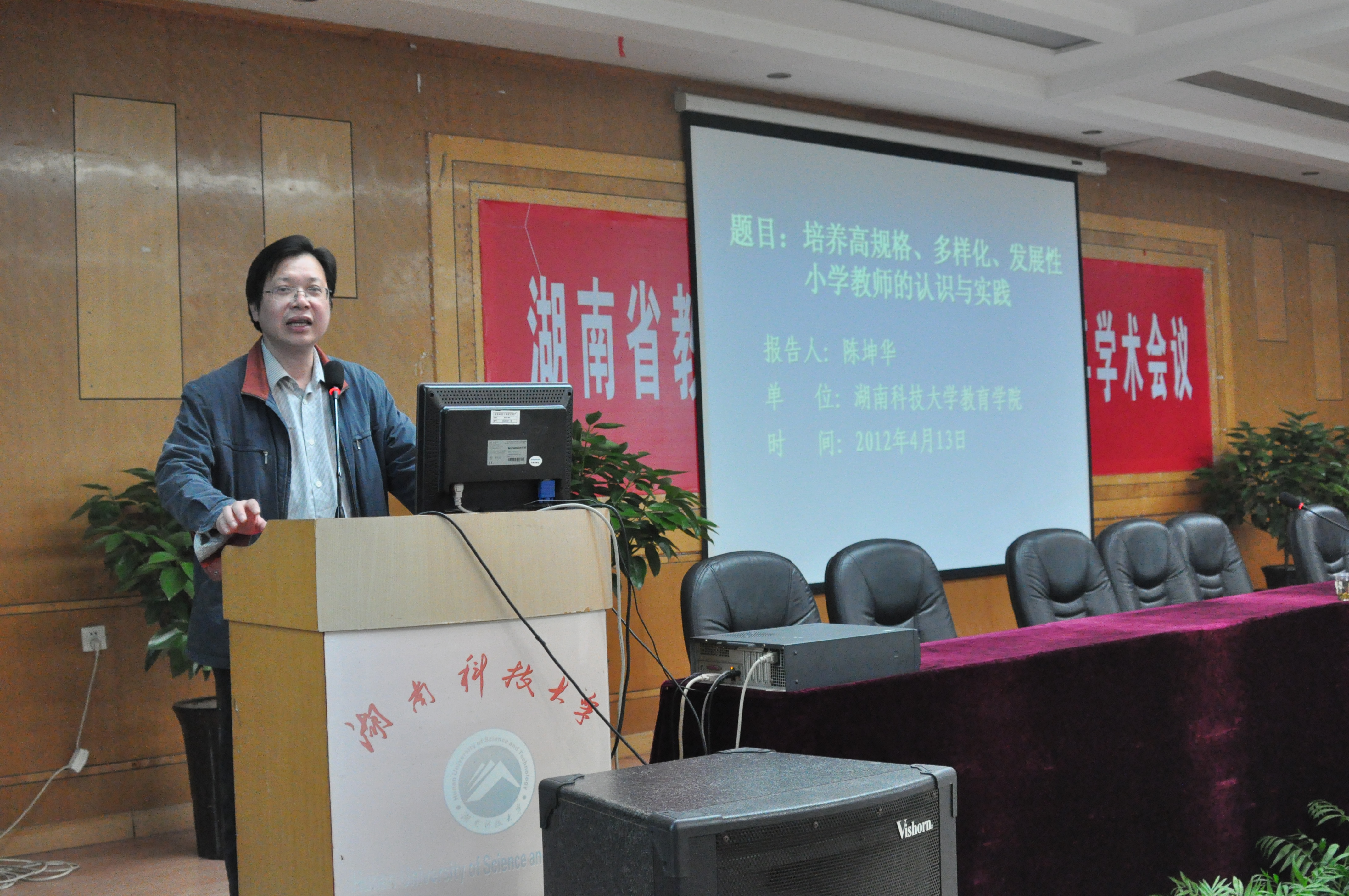 2012年4月14日15时,湖南省教师教育专业委员会2012学术会议的分组研讨暨教师专业标准解读在学术交流中心展开,这是湖南省第二届教师教育专业委员会会议,也是我校继湖南师范大学之后首次承办此类大型的学术交流活动,我院院长陈春萍、党委书记谭建平和副院长陈坤华等数十位专家教授列席此次会议。