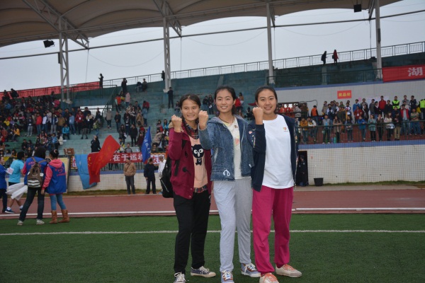 本次预赛共有51名参赛选手,分四组进行,每组12至13人。第一组选手们实力相当,你追我赶,竞争较为激烈。来自商学脘的粱向芳始终保持优势,最终赢得小组第一。无独有偶,同样来自商学院的罗泽慧是第二组的小组第一。比赛至此,第三组的选手们给了现场观众一个不小的惊喜。来自潇湘学院的周晗原本一路领先,谁知竟在第一圈后半段被来自信息与电气工程学院的安永娟逐渐追上并超过,周晗也不甘落后,于是两人在第二圈陷入了激烈而艰难的拉锯战,双方的啦啦队也适时地行动起来,一时间,两院观众席助威声、呐喊声一浪高过一浪,鼓声密如雨点,彩旗飘似飞虹。你争我赶,空前热烈。