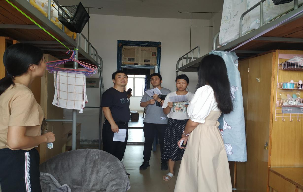 入学报到工作完成后,教育学院院长李海萍、副院长谭千保、副院长陈京军、党委副书记刘辉亚以及研究生辅导员肖娟宜、本科生辅导员尹琼芳和学生会主席团成员共同前往新生宿舍,检查2019级本科生和研究生入住情况。每到一间宿舍,院领导都会详细了解新生的基本情况,勉励学生勤奋学习,对于新生宿舍存在问题的地方,他都详细记录在册。
