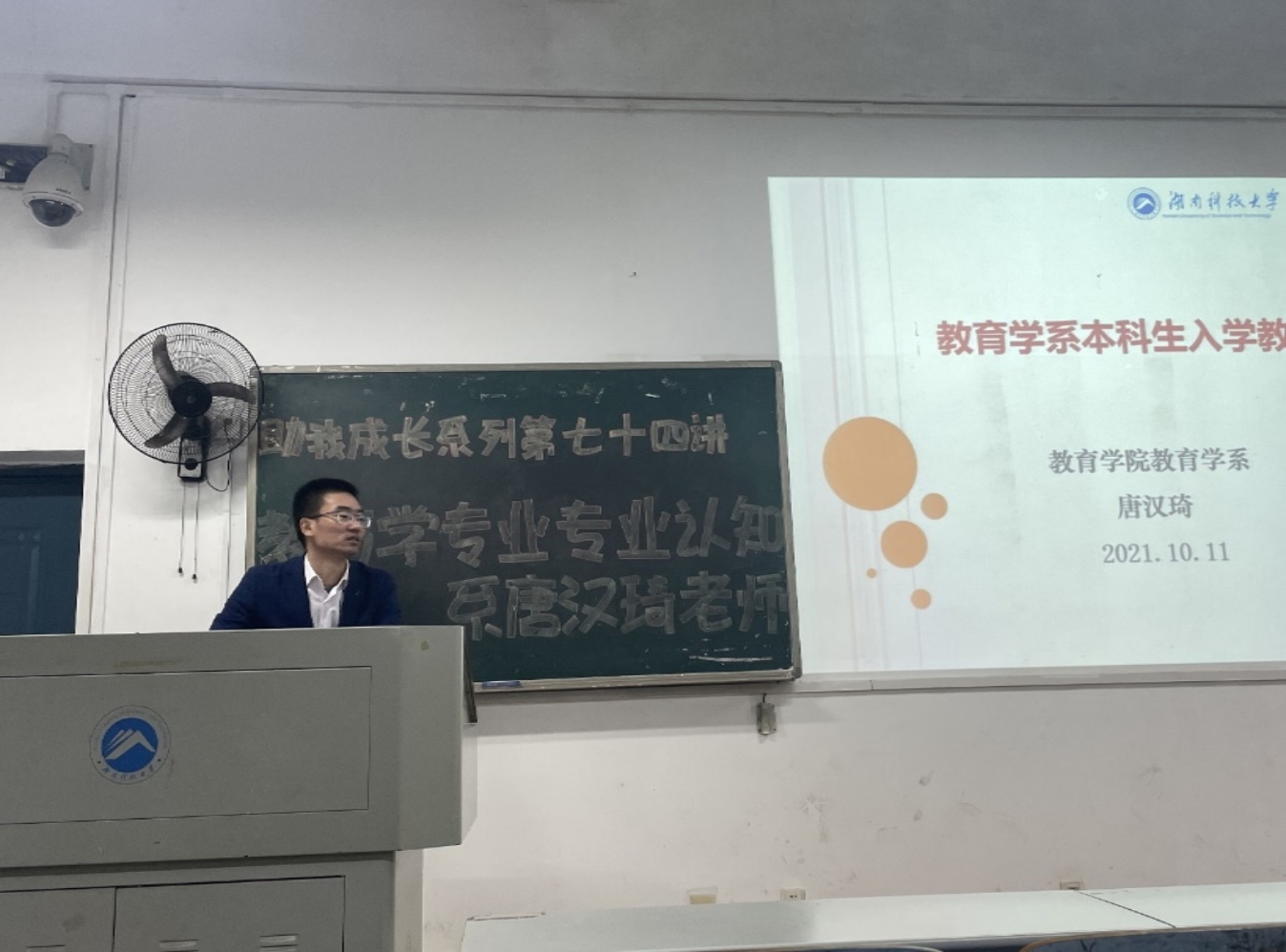 为使2021级教育学系的新生进一步了解本专业的知识及其发展前景,10月11日19:00,“助我成长”系列第七十四讲——教育学专业认知教育讲座在第八教学楼1-5举行。讲座由教育学院系主任唐汉琦主讲,全体21级教育系新生到场参加。
