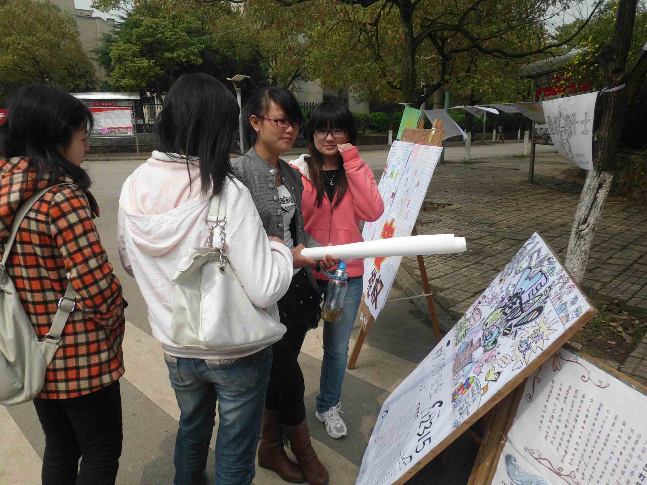 活动当天,资权部把前期评选出来的消费权益趣味漫画以及手抄报展示到电信路口,并开展了消费权益知识问答以及抽奖活动,同时收集同学对学校以及学校周边消费问题的反馈信息,当场展览。小食品,水性笔,笔记本,棒棒糖等奖品纷纷被送出。据悉,在活动结束后,本次活动所收集的消费权益反馈信息海报更将展至八教大厅,让同学们更多的了解我们身边的消费权益问题。“通过此次活动,可以让同学们更好的获取消费者权益知识,增强消费维护意识。”来自12级教育技术学2班的蒋昭香这样评价道。
