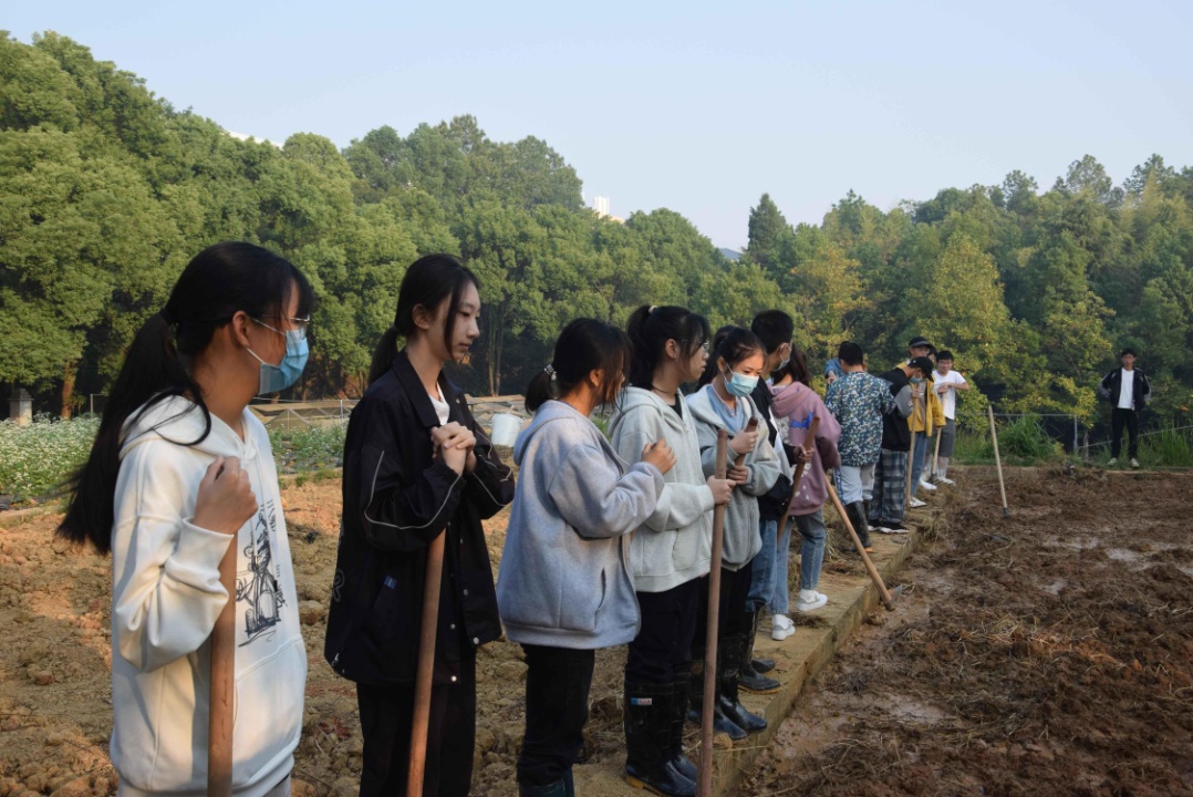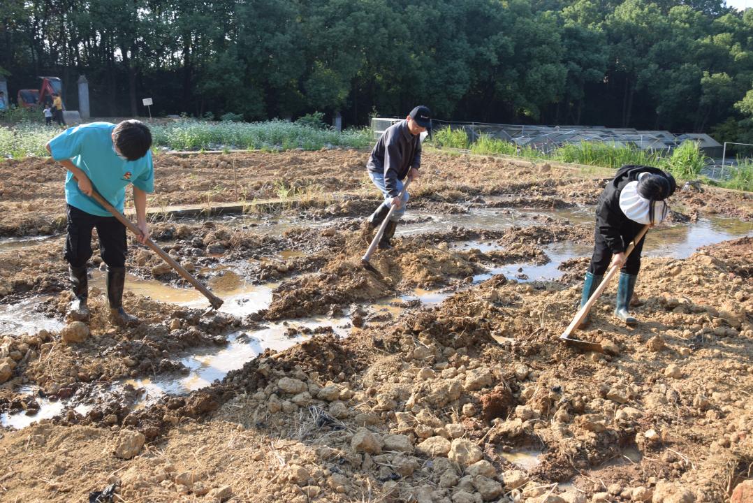 同学们翻种土地中