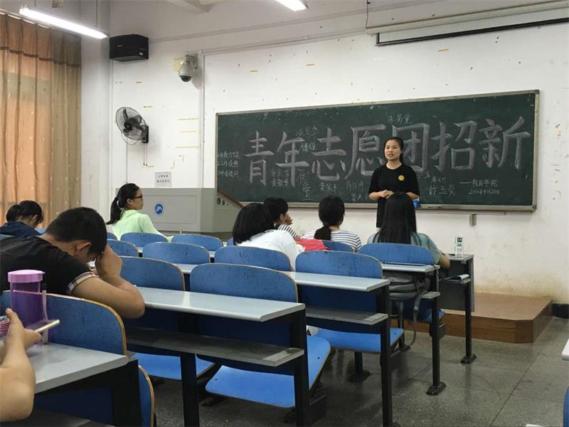 为给志愿团注入新鲜的血液,壮大教育学院青年志愿团的力量,将志愿者精神发扬广大并进一步传承,给新生一个锻炼的机会,也为下一届团委学生会培养、输送人才,教育学院第十四届青年志愿团于2016年9月28日12:30正式开始招新。面试分为三个地点:教育学和教育技术学专业在第八教学楼1-1,主面试人为学生会副主席范乐佳和德育实践部副部郑巧玲;小学教育专业在八教102,主面试人为志愿团团长李菊和德育实践部副部黄馨慧;应用心理学专业在八教103,主面试人是德育实践部副部钟秋萍。从面试的现场来看,报名情况较为可观,这为之后志愿团美好的明天奠定了基础。