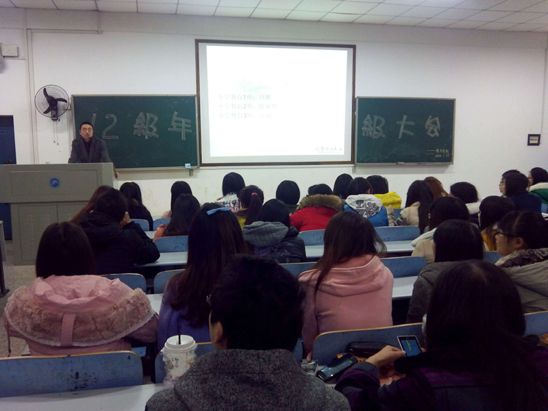 2月27日晚19点整,12级年级大会在八教4-3召开,学工办主任兼12级年级主任李涛出席,12级的全体学生参加。大会总结2013年度学生专业成绩情况,对专业排名进步明显同学进行表彰。