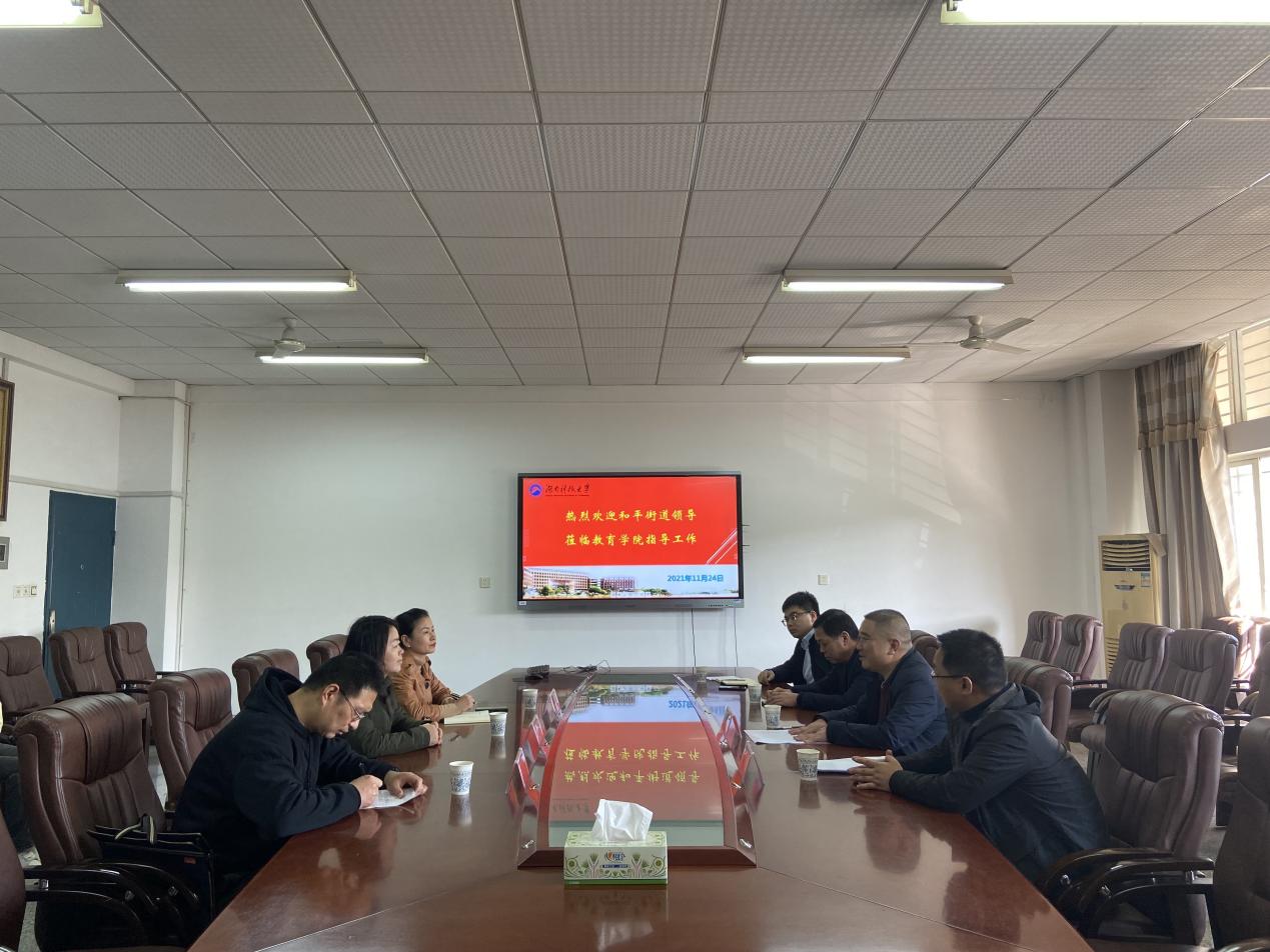 11月24日下午15:00,湘潭经开区和平街道领导一行莅临教育学院商讨校地合作事宜,会议在第八教学楼208会议室举行。和平街道党工委书记李熙,党工委副书记周桂波,党工委委员、办事处副主任杨建辉,党工委委员、组织委员杨稳桥,湖南太阳成集团tyc122cc入口副院长陈慧青,党委副书记刘婕,学工办主任李涛出席会议,教育学院团委学生会主席杨淑雯、主席团成员康玉婷,社团管理部副部长詹卓铭、董与佟到场参加。
