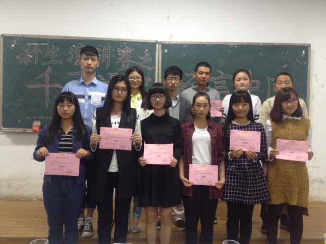 又是一年秋风送爽时,又是一个硕果丰收日,我校迎来主题为“千声涌起,畅言中国”的新生演讲比赛。本次比赛由校学习部主办,院学习研究部承办,学院于2015年10月9日晚7点准时在第八教学楼1-1教室举行,此次比赛采取现场评委打分的方式,评选权交予主席团部分成员和上届校级比赛获奖者,13位勇气可嘉的选手通过限时5分钟的演讲尽显个人风采,现场反响热烈,气氛活跃。