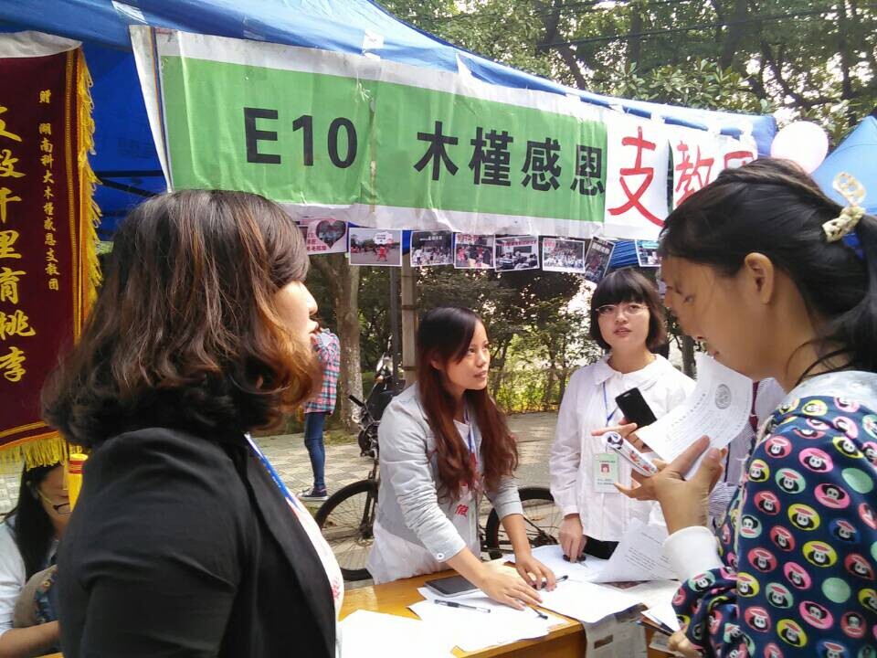 木槿感恩支教团社长冉晓玲介绍到:前来报名的同学只要登记信息并缴纳社费就成为木槿感恩支教团的一员。收取社费是木槿今年招新的一项重大变化,这项改革将有利于社团活动开展,减轻社团外联部的压力,让更多的人力投入的支教活动中去,使木槿的发展更上一个高度。在招新点,工作人员耐心的向前来咨询的学生介绍了社团的支教活动安排和社团活动成果,解答他们的疑惑。