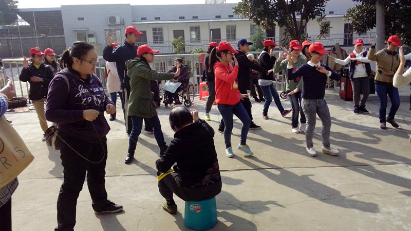 (志愿团成员正为老人表演)