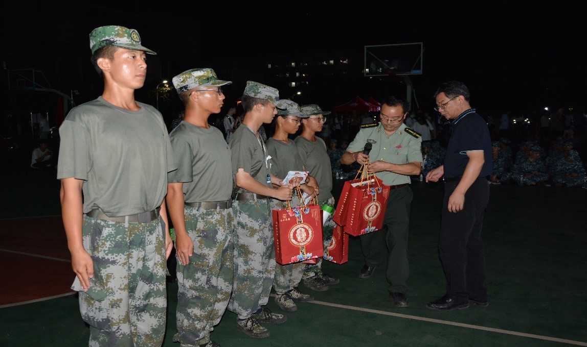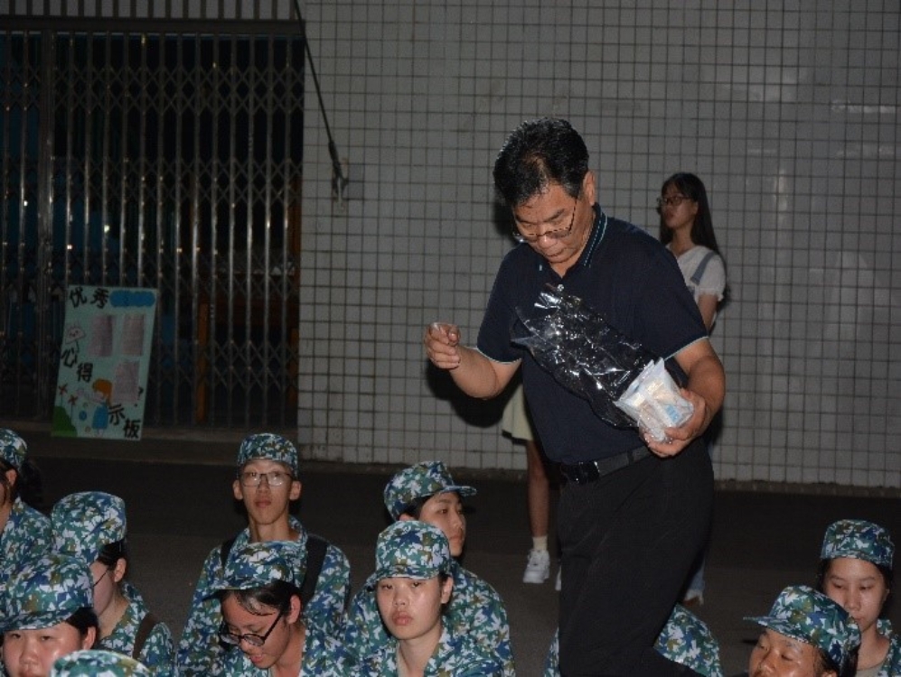 晚会以2021级应用心理学三班的刁英超的独唱歌曲《我还年轻我还年轻》开场。轻快摇滚的曲风氛围感满满,将同学们立刻点燃。歌曲过后,李炳煌问到:“大家想家了吗?”“想。”“吃点月饼就好了”。随后李炳煌、刘辉亚及学生干部们给全体新生发放月饼,以表节日祝福。“掌声不够热烈啊”…在一阵阵掌声中,刘辉亚代表学院给教官们分发中秋月饼礼盒。刘辉亚谈及军训,问道”军训累不累?“同学们表示累但可以坚持。又恰逢中秋,希望同学们可以给爸爸妈妈打个电话,送上节日祝福。其次,希望同学们可以迅速融入教育学院这个大集体,在日后的学习生活中取得好成绩。