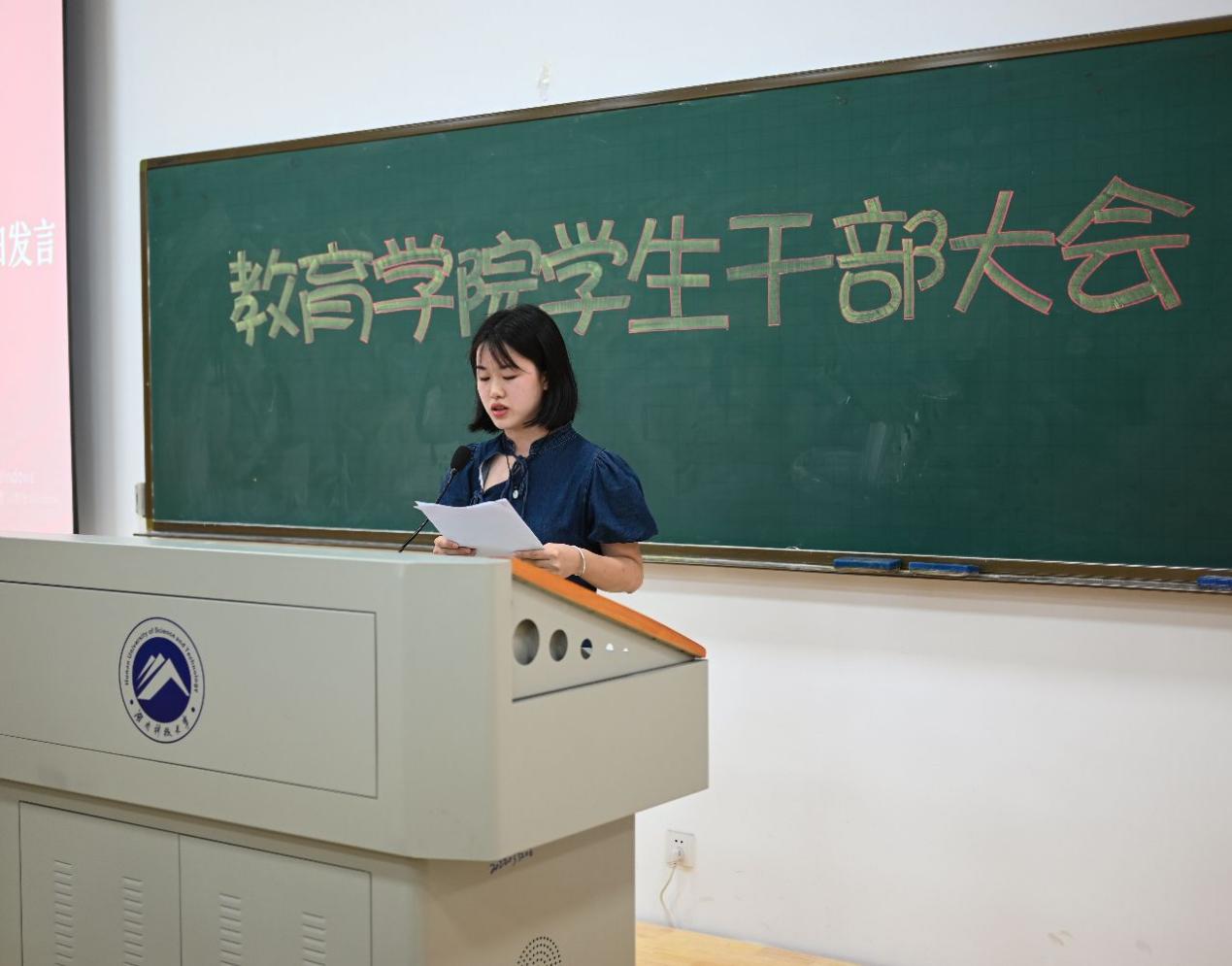 9月5日下午,教育学院干部大会在敏行楼C512举行,教育学院党委书记李炳煌、党委副书记文红梅、学工办全体老师及学生干部参加,会议由欧树宏老师主持。