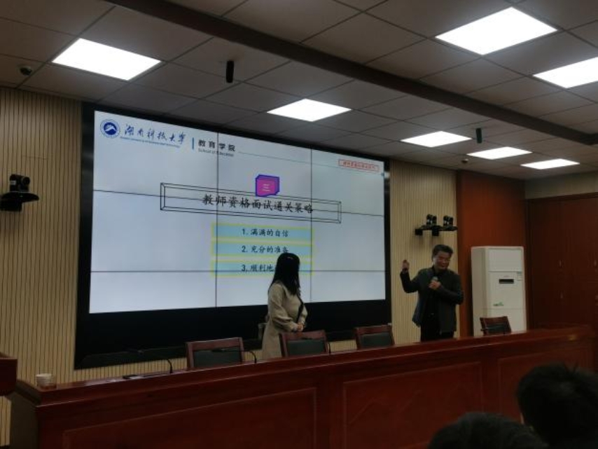 为深入贯彻落实三全育人,提升学生师范生职业技能,帮助师范类学生提高教师资格证面试通过率,12月19日上午8:30,教育学院在第八教学楼308会议室举办“我为学生办实事”之教师资格面试指导。本次指导由教育学院党委书记李炳煌教授主讲。教育学院党委副书记刘婕主持。