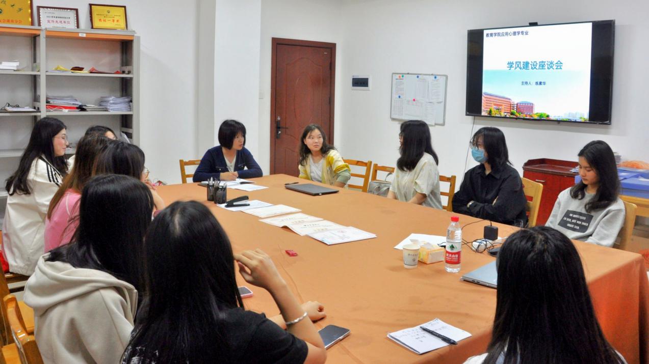 2024年4月16日至19日,在敏行楼A334,教育学院召开学风建设座谈会。由辅导员罗江林、练素华、张礼林分别主持各专业会议,各年级学生会干部、班干部、党员、学生代表参加。
