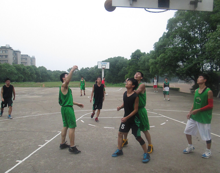 此次比赛的两支球队分别为11级、12级的小教队与来自11级的应心队。小教队的绿色球衣充满了生机与活力,而应心队的黑球衣更是霸气外露。中午时分,烈日高照,酷热难耐,比赛却十分激烈,所有运动员都积极投入,球跑人追、紧张护球、闪电抢球、球进篮瞬间全场目光凝住。 比赛分为四场。第一场,小教队领先应心队14分,第二、三场比赛中,应心队奋力反抗,以迅雷不及掩耳之势投进了3个三分球,引起了全场一阵阵的尖叫与掌声,以49:49的成绩与对方打成了平手。当比赛进行到第四节时 ,比赛更加的激烈了 ,小教队如猛狮来袭,越战越猛,最终赢得了比赛。