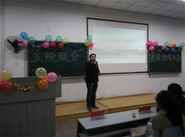 “毕业即失业”两位主持人抛下重甸话题,以动态数据剖析大学生就业现状,以凸职业规划意义所在。在嘉宾轮述环节,物电学院陆子龙以诙谐趣动凌宇全场,在借用ppt演示中以大步骤演巡辅以个别分析,大致以自我认知、环境分析、计划实施、调整评估四方向为主,引用《超级演说家》刘媛媛在《面对不成功的人生》为结。“永远年轻,永远热泪盈眶,永远相信梦想,相信努力的意义,相信遗憾比失败更可怕”新时代就业者与此共勉。接替的教育学院张彤在职业规划调剂上采取经验介绍为主,ppt粗浏为助结构,切入赛点,将即时经验台面摆出,“不是你获得了什么,而是你最终成为了什么”就业不仅是择业,更是选择自己。过渡场以歌曲《我为自己代言》抚平场局,“我可怜你总是等待”这是谁的时代,这值得所有就业与被就业者思究。