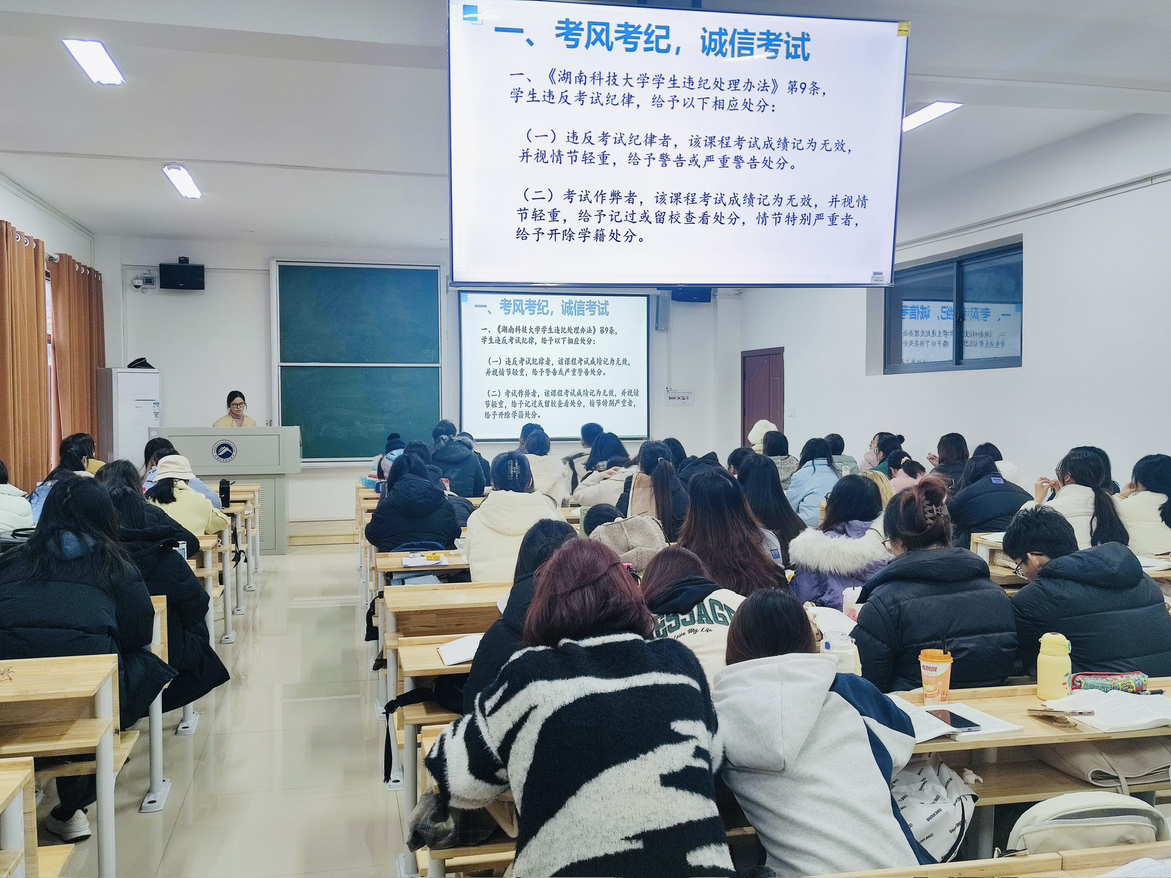 临近期末,为提高安全意识,杜绝安全事故,营造文明新风,严肃考风考纪,12月19日至12月20日,学院召开年级大会暨2023-2024第一学期期末考试动员大会,学院党委副书记文红梅和年级辅导员主讲,各年级学生参加。