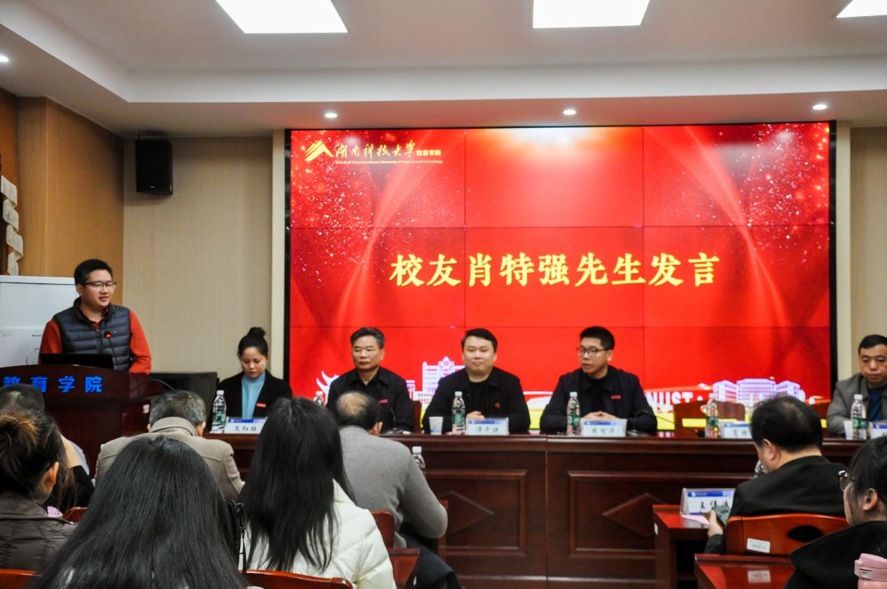 ▲教育学院2002级教育技术专业学校友肖特强发言