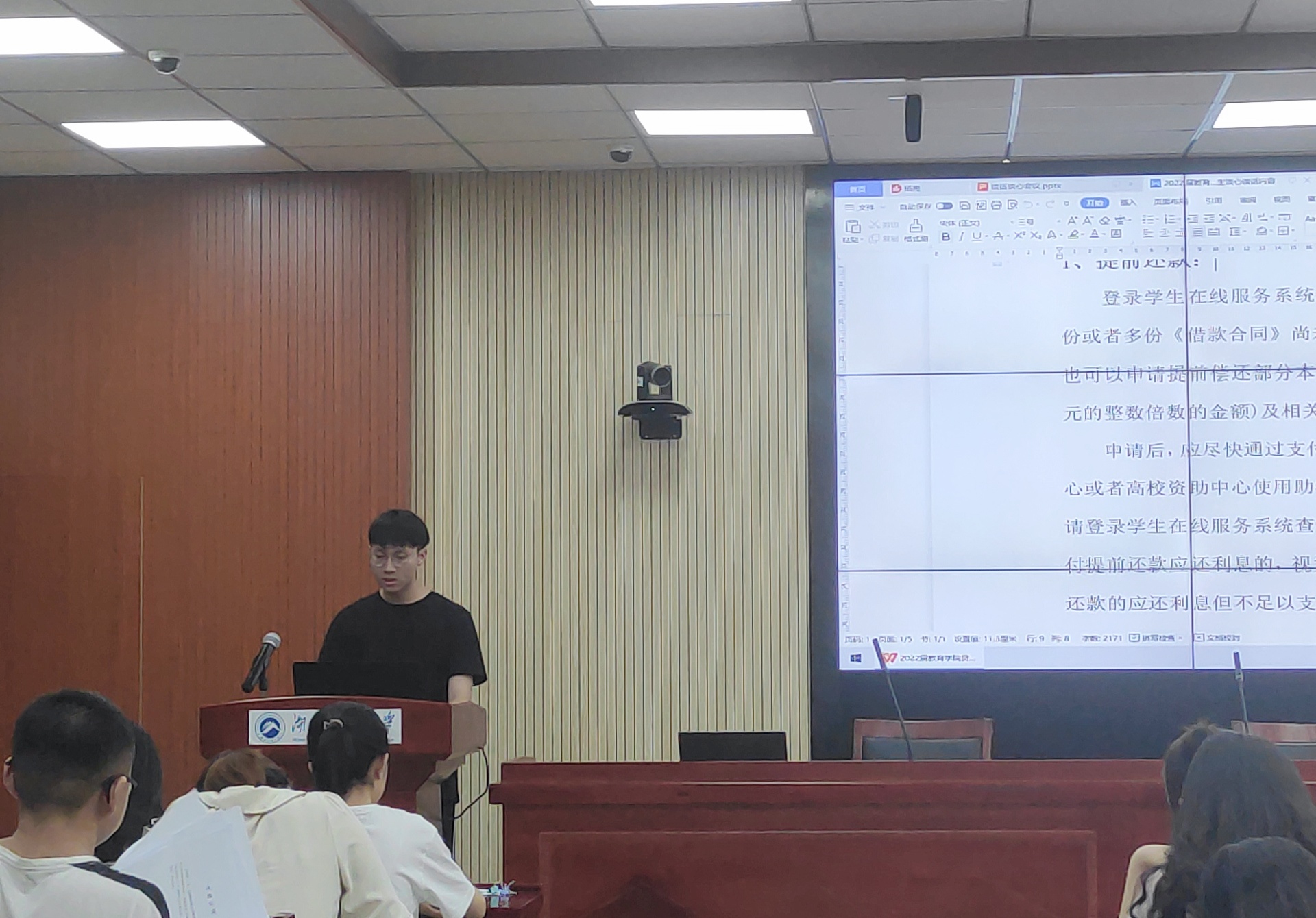 其次,勤工助学部副部长杨佳霖向参会人员讲述了如何办理还款及还款的注意事项,各参会人员在指导下认真填写了相关材料;
