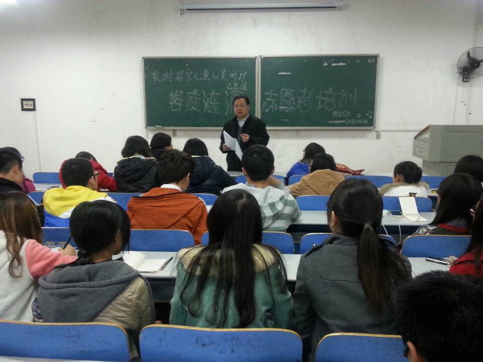 11月21日晚,我院农村留守儿童心灵呵护志愿团,“娄底涟源”志愿者培训在八教1—6举行,本次志愿活动将深入娄底涟源塘湾中学,对近400名的留守、半留守儿童,进行为期一天心灵关爱志愿活动。