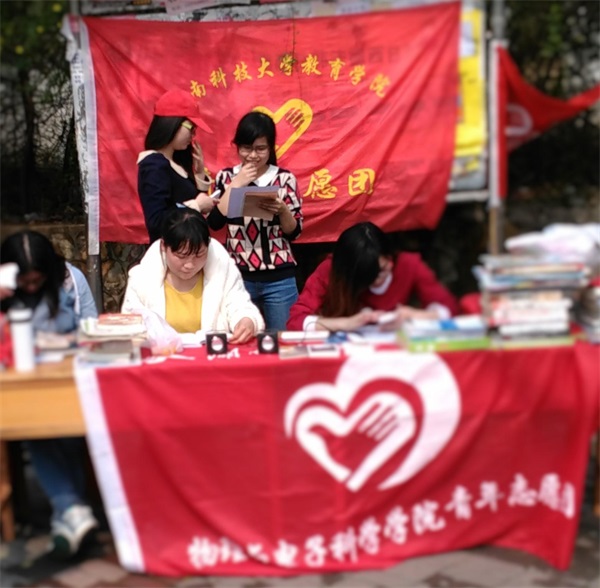 教育学院团委学生会德育实践部副部长徐春菊介绍说,旧书回收的摆点活动从早上8:00开始,下午17:00结束。同学参与热情很高,不少人把不用的旧教科书捐献出来,希望可以为书吧的筹建出一份力,这不仅为需要相关教材的学生提供了便利,也有利于环保。此外,还有“传承雷锋精神,共建和谐校园”签名活动,我们也会给前来捐献书籍的同学回送明信片一张。