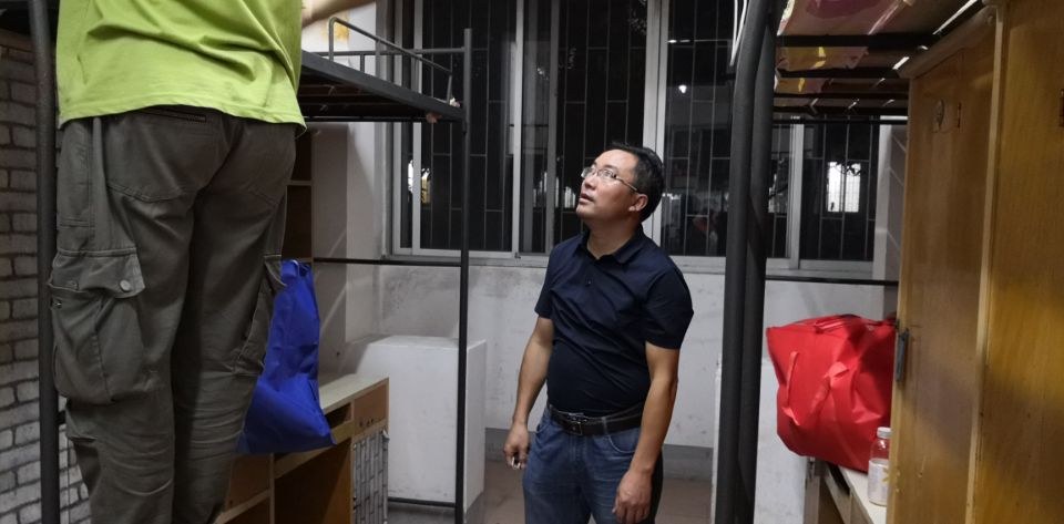 巡查期间,老师们首先对宿舍卫生和发放的用具进行检查。对于不齐全或多余的用具,刘辉亚提醒各位志愿者及时领取或归还,并让志愿者引导新生及时缴费和清理宿舍卫生;对于宿舍内的墙纸,字画等装饰,他提出不必全部清理,只要保持干净整洁,将陈旧破损的清理即可。之后,刘辉亚、尹琼芳和志愿者们一起检查了新生宿舍锁扣、书柜等,进行发放用具大小及数目的检查,并建议志愿者们将情况及时反馈,及时解决,更好的迎接新生的到来。