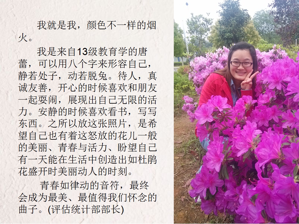 3、负责研究生部分工作,与本科评估统计部联络,制作学院周报。