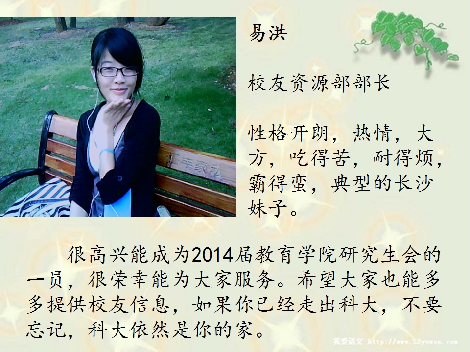 5、配合网络宣传部更新、整合教育学院研究生导师的资料信息,丰富学院网站研究生会工作内容。