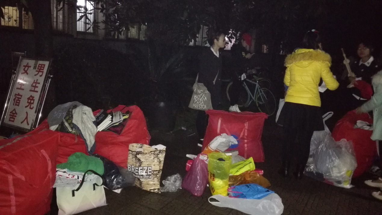 活动开展前,各个中队中队长将队员进行分组,并讲解相关注意事项。7:20左右,志愿者去到学姐学长的所在的寝室进行‘扫楼’,当志愿者们将最后一批收集的衣物送到指定地时已经是晚上十点。