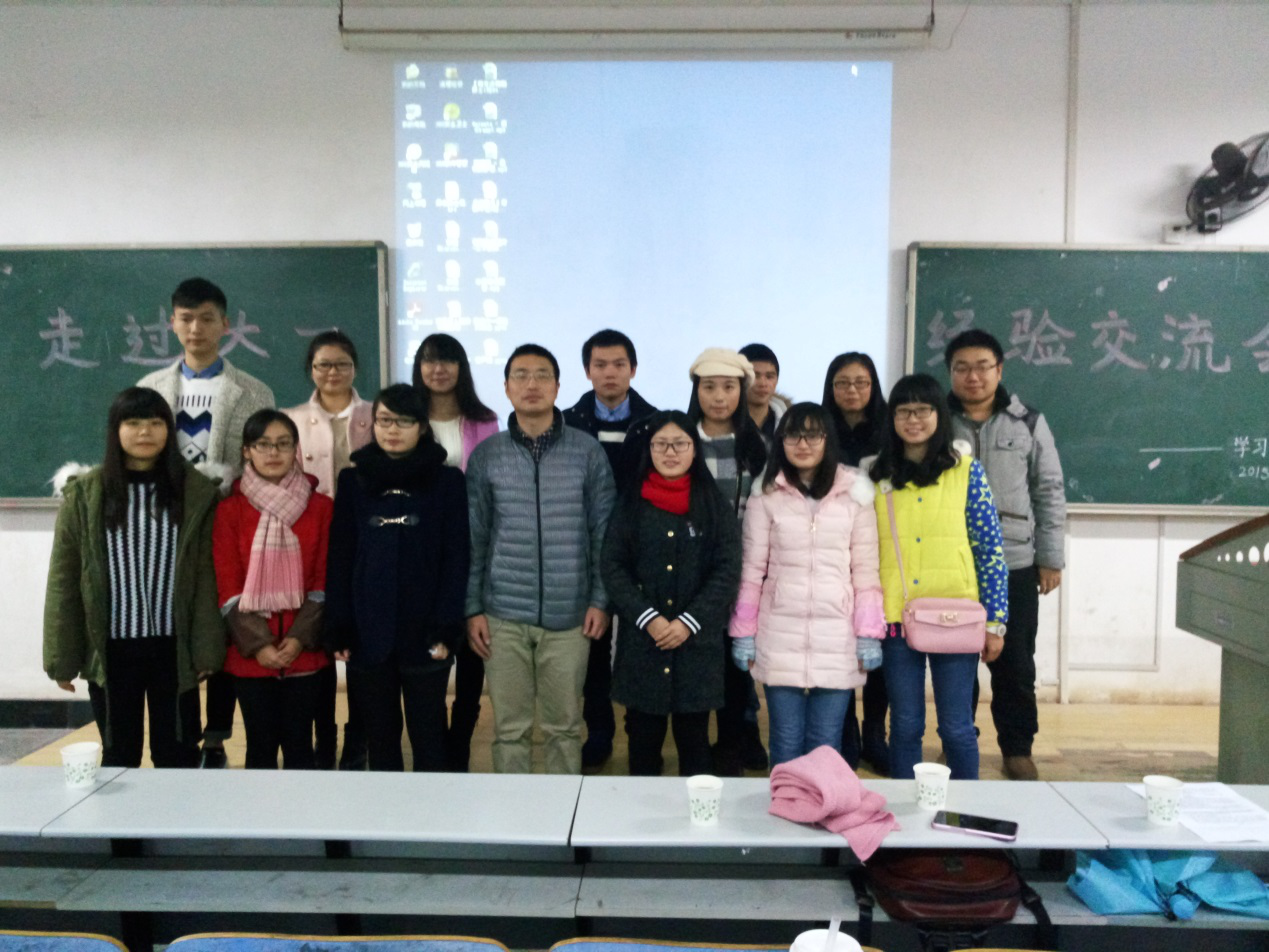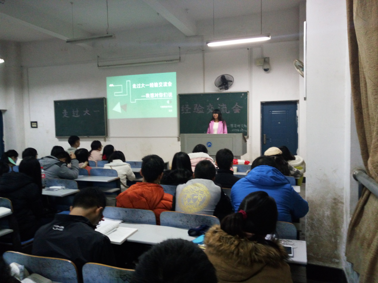 2015年12月13日晚在八教2-4举行的走过大一经验交流会圆满落下帷幕。本次经验交流会由教育学院学生会学习研究部主办。本次活动面向15级新生,希望可以帮助大一新生尽快适应新的学习和生活,树立良好的心态。出席本次活动的嘉宾有学工办李涛老师,团委学生会主席张彤、团委第一副书记徐春菊、团委学生会副主席兼纪检宿管部部长刘亚琨、15教育技术学2班助班王妍、15级新生蹲点张敏。