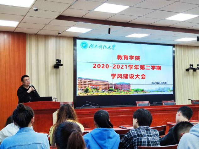 为迎接教学礼拜周的到来,推进学院学风建设工作,4月25日下午5:30,教育学院新学期学风建设大会于第八教学楼308会议室拉开帷幕。学工办李涛出席会议,学风建设部、体育活动部、宿舍管理部部长及副部长,18、19、20级班长、团支书、学习委员参会。会议由学生会副主席袁媛主持。