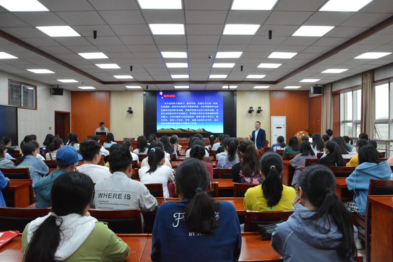 夏永庚则从新生关心的系情简介、专业介绍和师资队伍出发,对专业类的课程规划、培养目标、教学特色、专业优势、学生就业去向与前景进行细致入微的宣讲。对于小学教育专业,夏永庚表示学院将继续坚持“德能并重”的培养目标、“一体两翼”的培养模式和“三维协同”的培养过程,发挥好专业在师资力量、学科平台体系、服务地方效益方面的优势,助力学生提高教师专业信息化素养。夏永庚的介绍内容充实、语言生动幽默,激发起了新生们对即将开启的大学学习生活的向往与热情。同时,他提出新生要认清角色定位、明确求学目标,掌握大一做好专业准备、大二进入专业、大三专业深化、大四专业应用的学习方法。“青春是用来奋斗的,让我们一起努力奋斗再出发!”夏永庚温馨有力的寄语获得了新生们热烈的掌声回应。